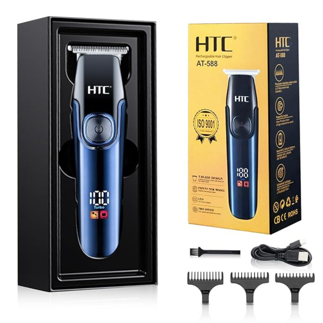 HTC Rechargeable Hair Clipper AT-588, available at ShopXonline, delivers powerful performance for precise haircuts and trims. With its rechargeable design and sharp blades, it ensures smooth and efficient grooming. Ideal for home or professional use, it guarantees a polished finish every time. Order now at www.shopxonline.lk for delivery within 1-3 working days in Sri Lanka.
