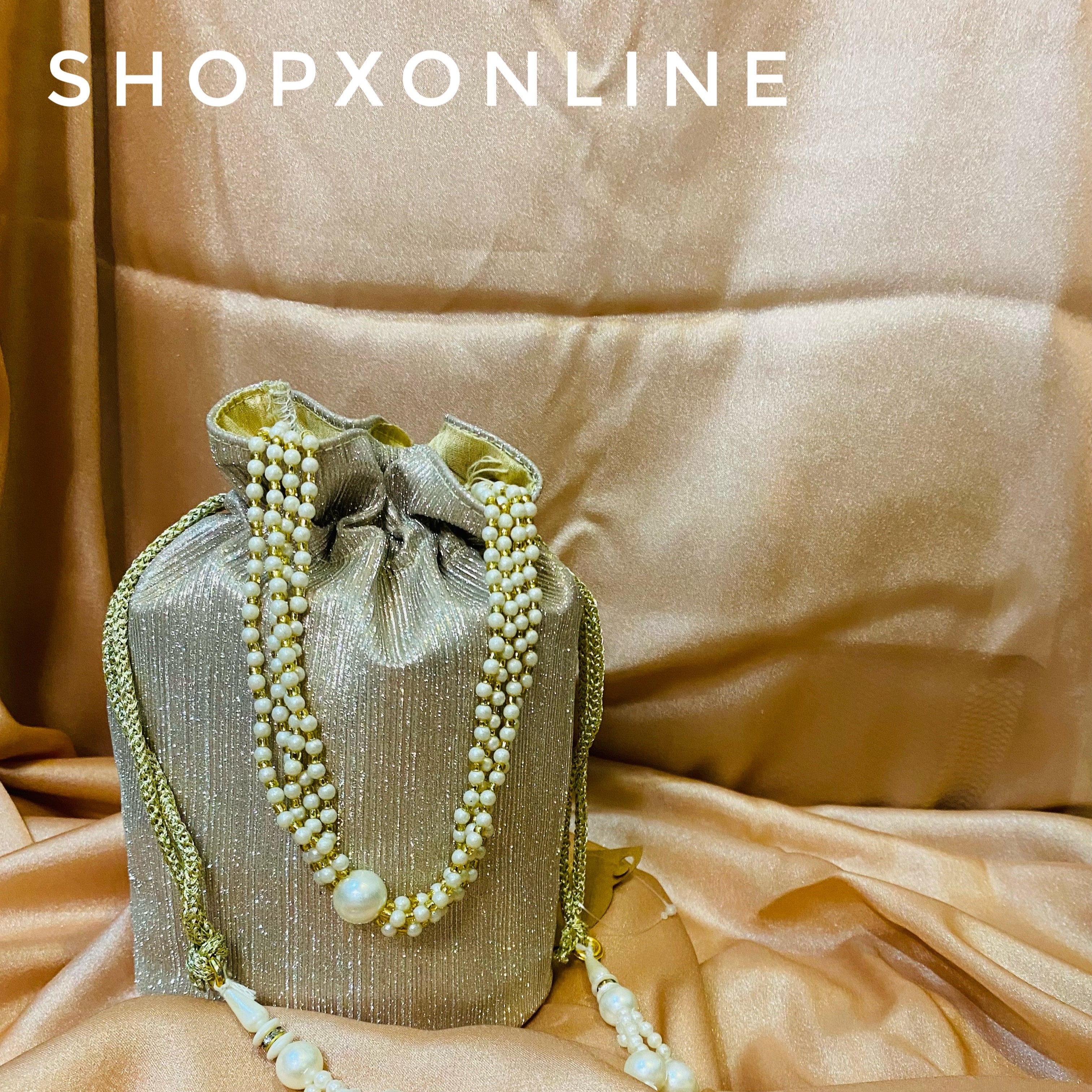 "Shop elegant Wedding Clutch - WP Potli 13 (Gold) Striped at ShopXonline Sri Lanka. Perfect bridal accessory with fast 1-3 day delivery. Order now from www.shopxonline.lk!"